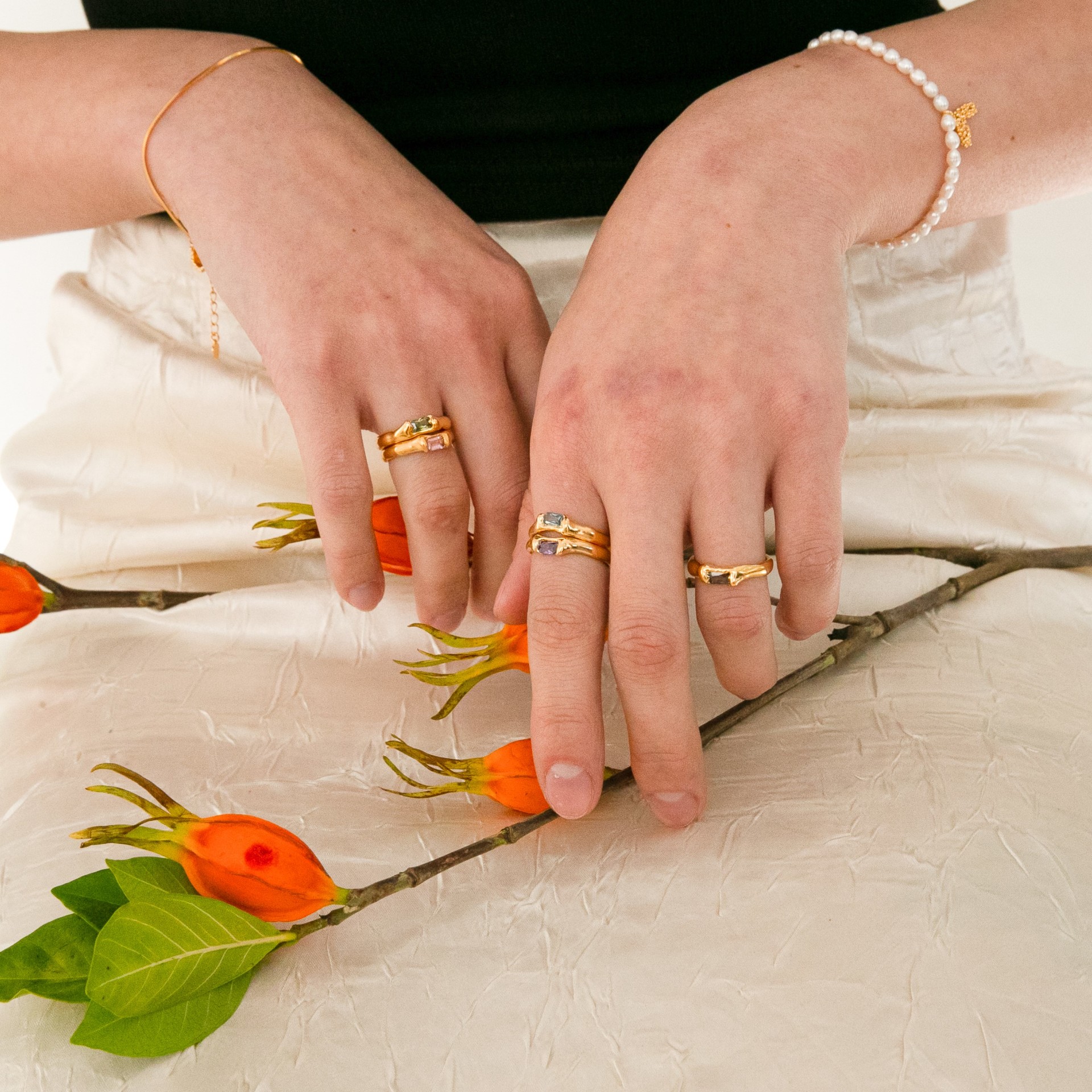 보석을 부드럽게 감싸는 자연스러운 세팅의 오픈링