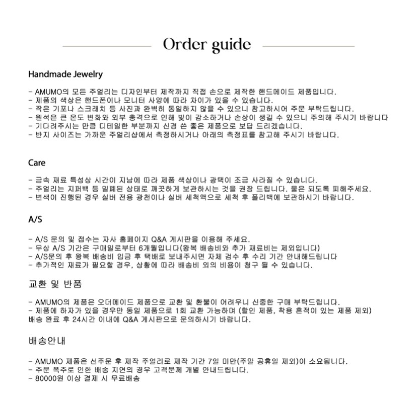 화이트 컬러는 공예 작업 중에 생기는 불순물을 벗겨낸 직후, 순수 은의 색이 올라온 색감입니다. 착용 후 생활중에 자연스럽게 은색으로 바뀌어가는 과정을 즐기실 수 있습니다.