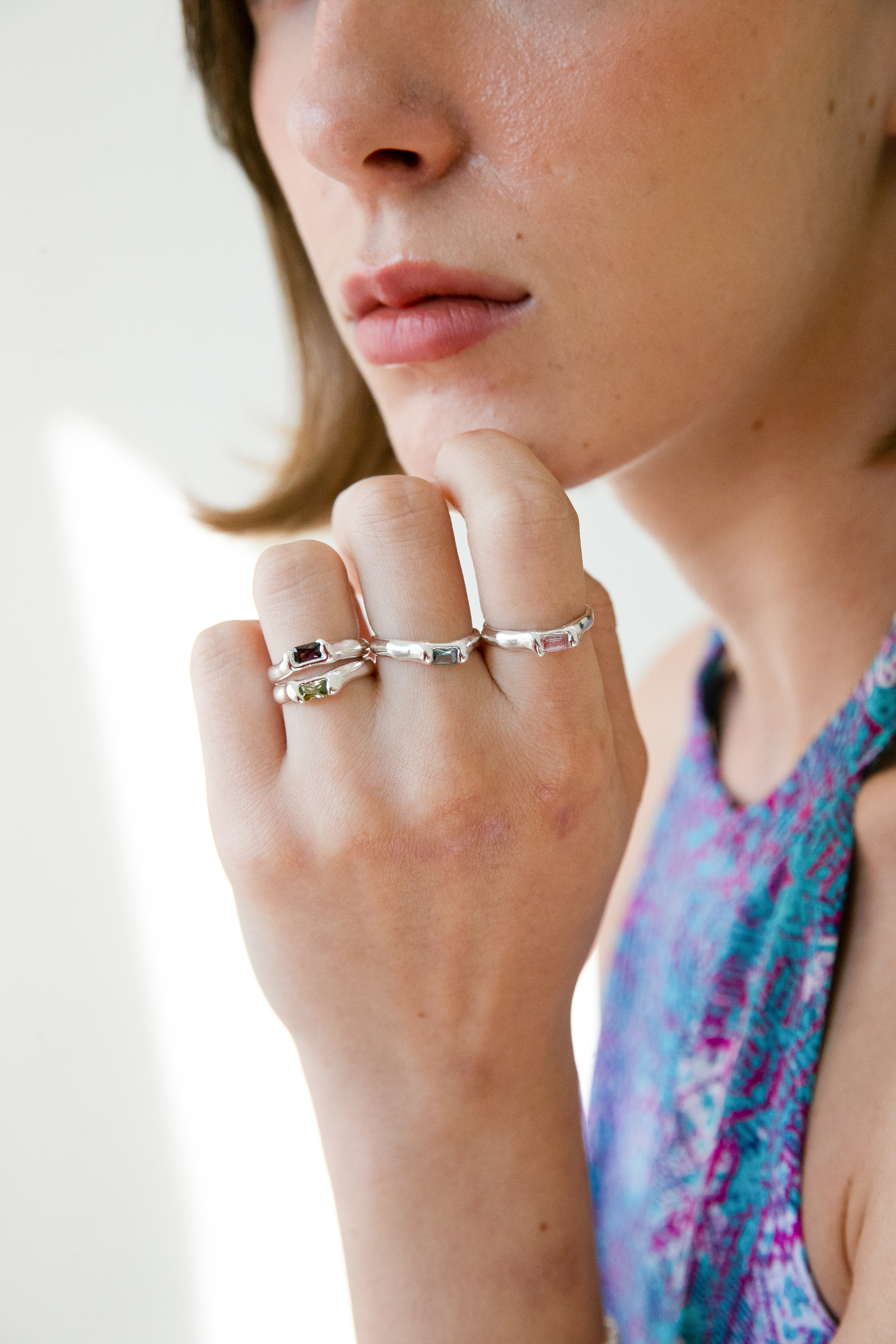 보석을 부드럽게 감싸는 자연스러운 세팅의 링
