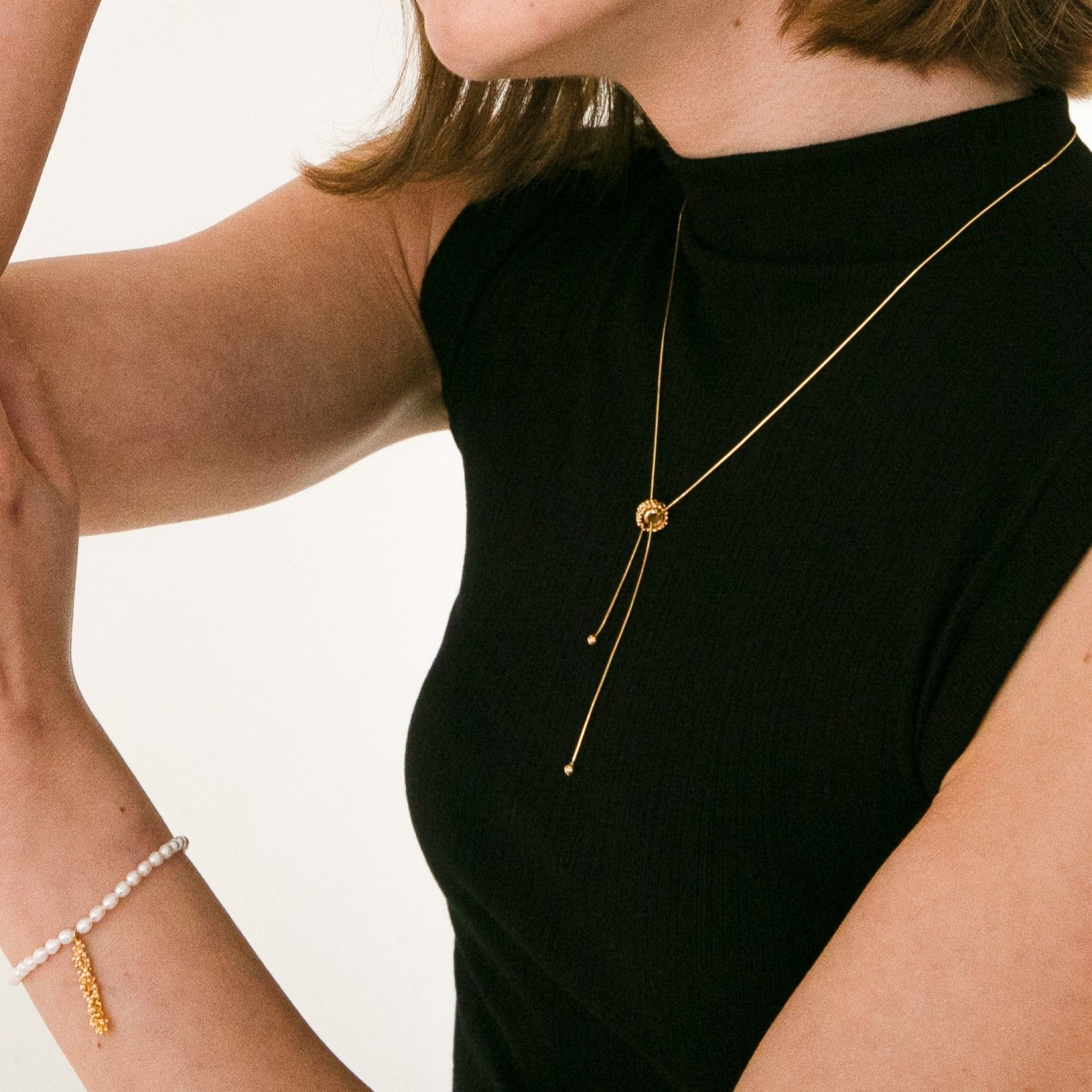 줄 길이 조절이 가능한 목걸이로 다양한 연출이 가능합니다.