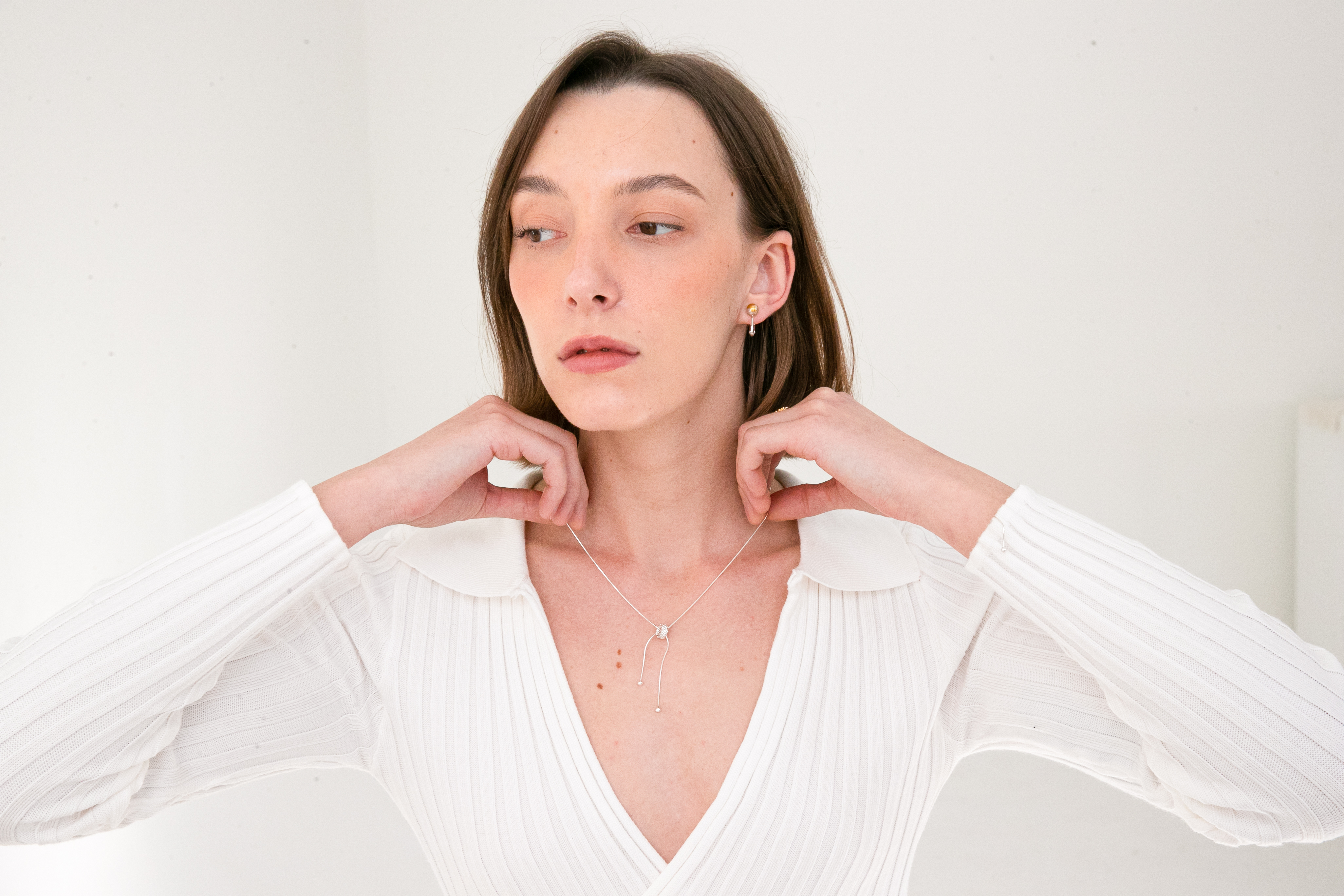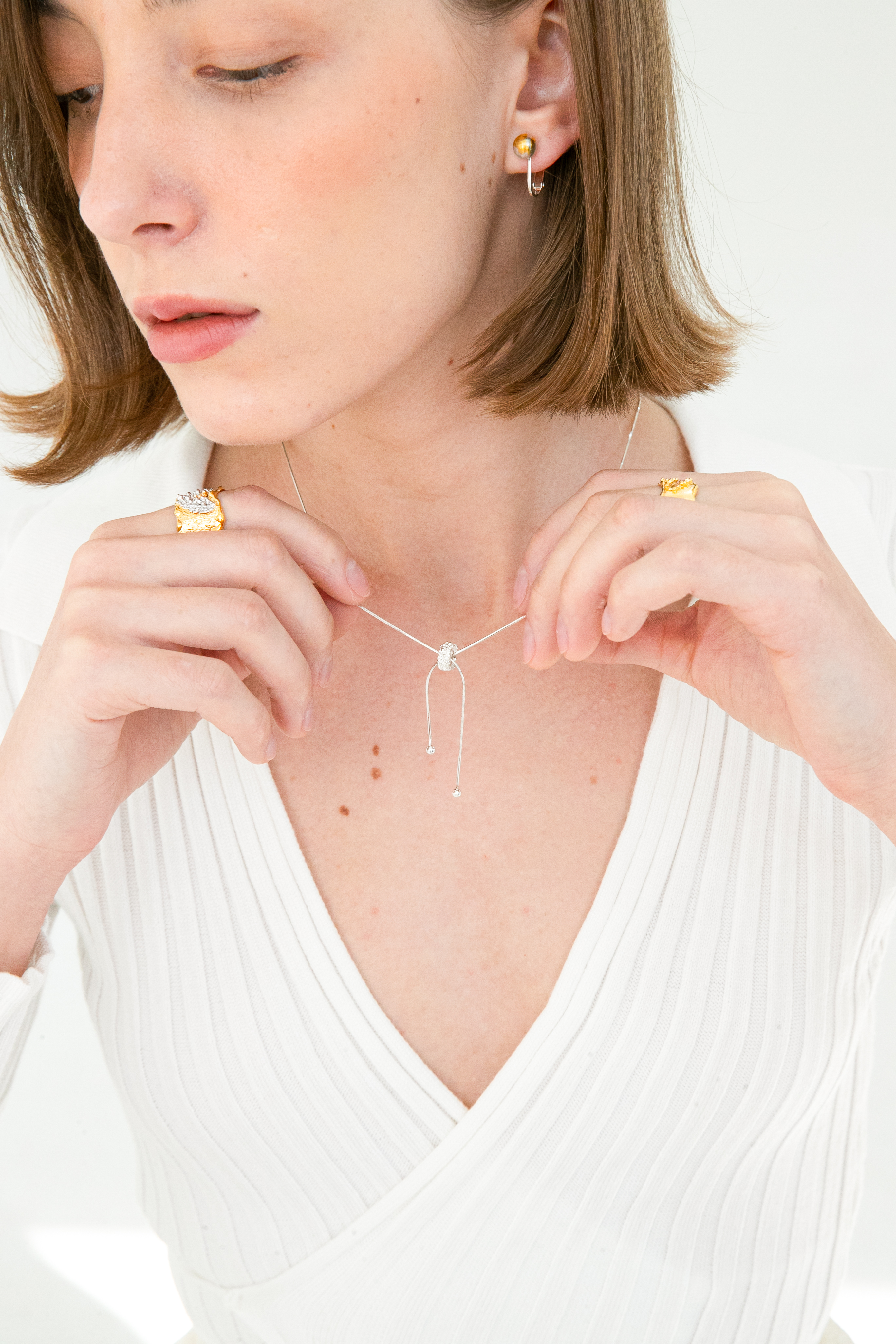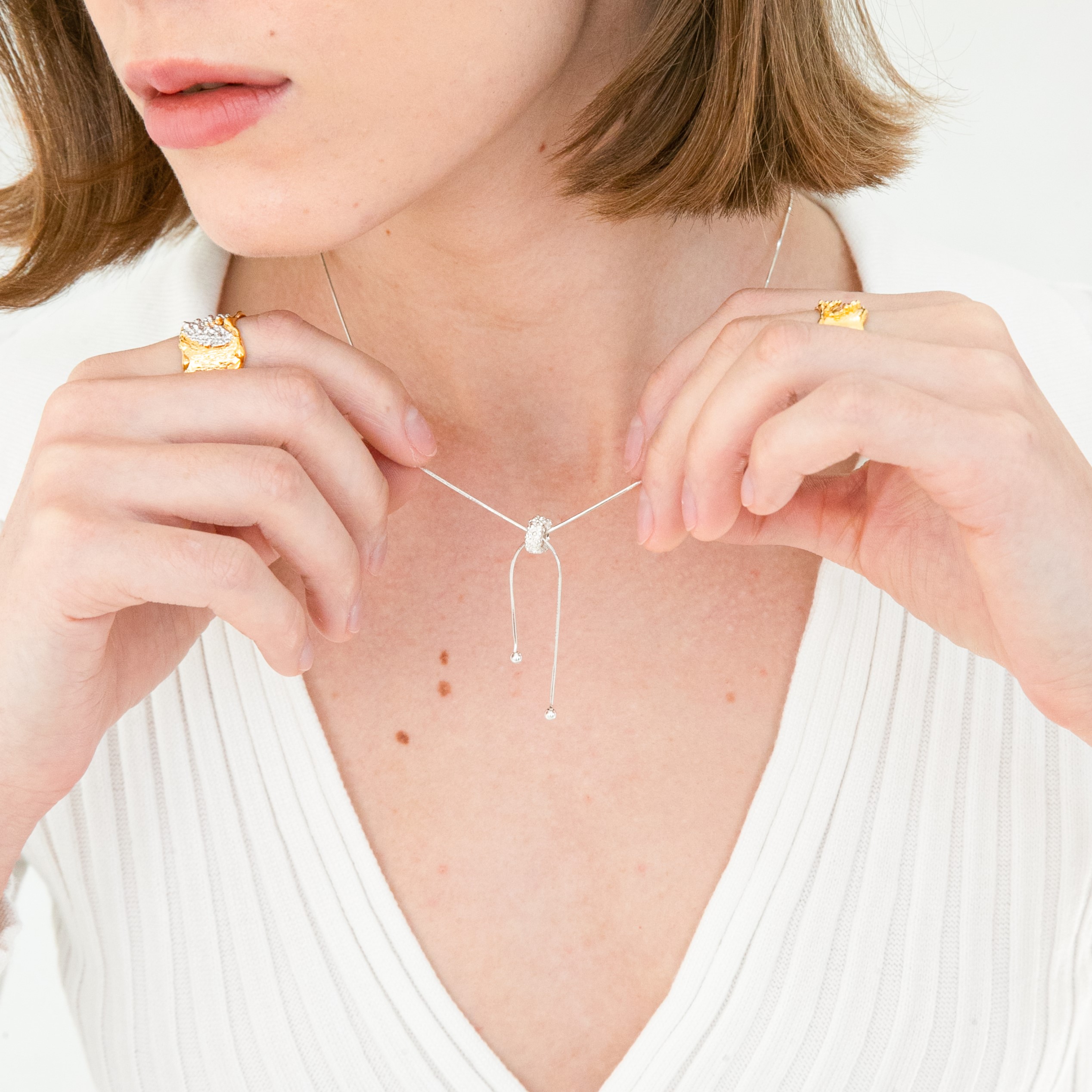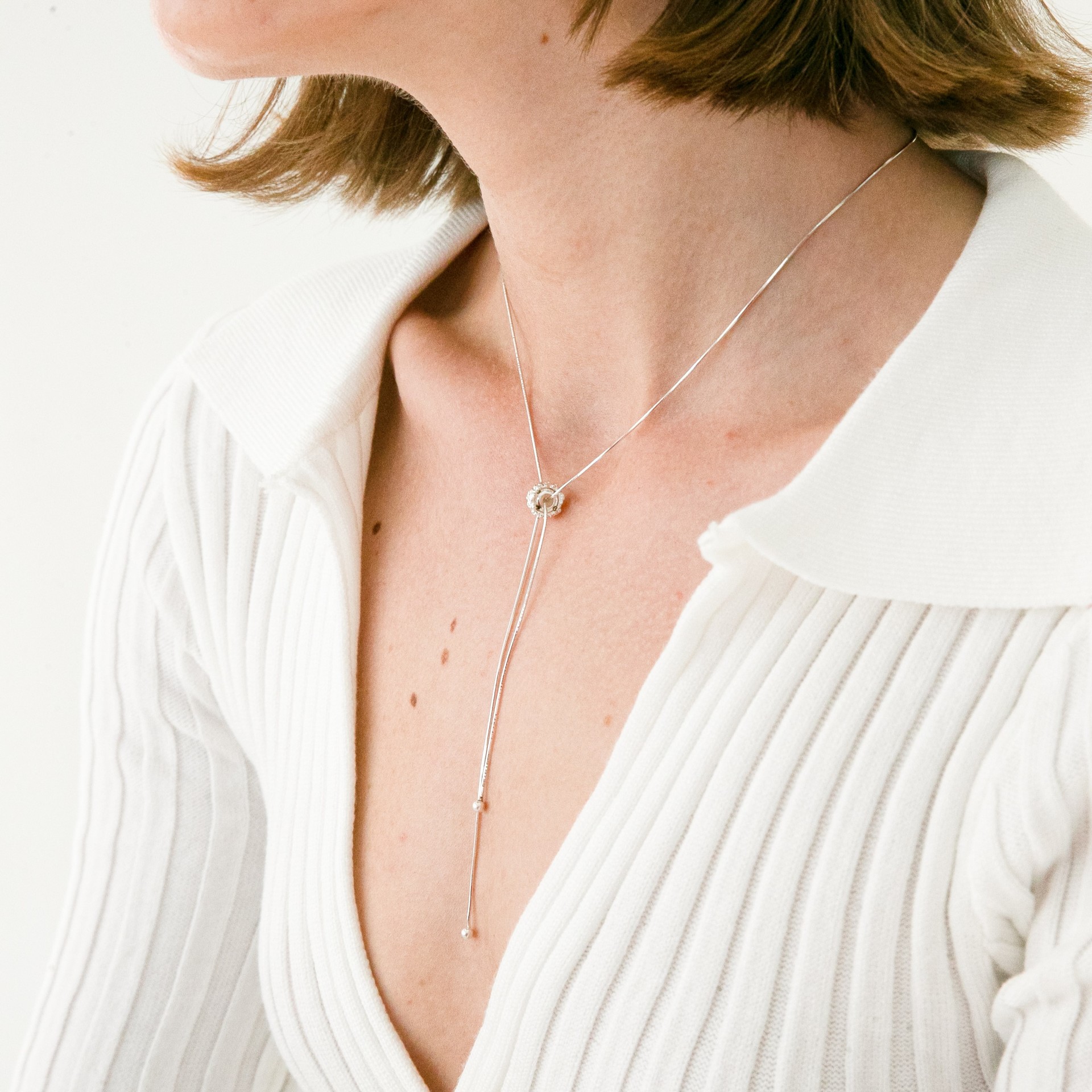 줄 길이 조절이 가능한 목걸이로 다양한 연출이 가능합니다.