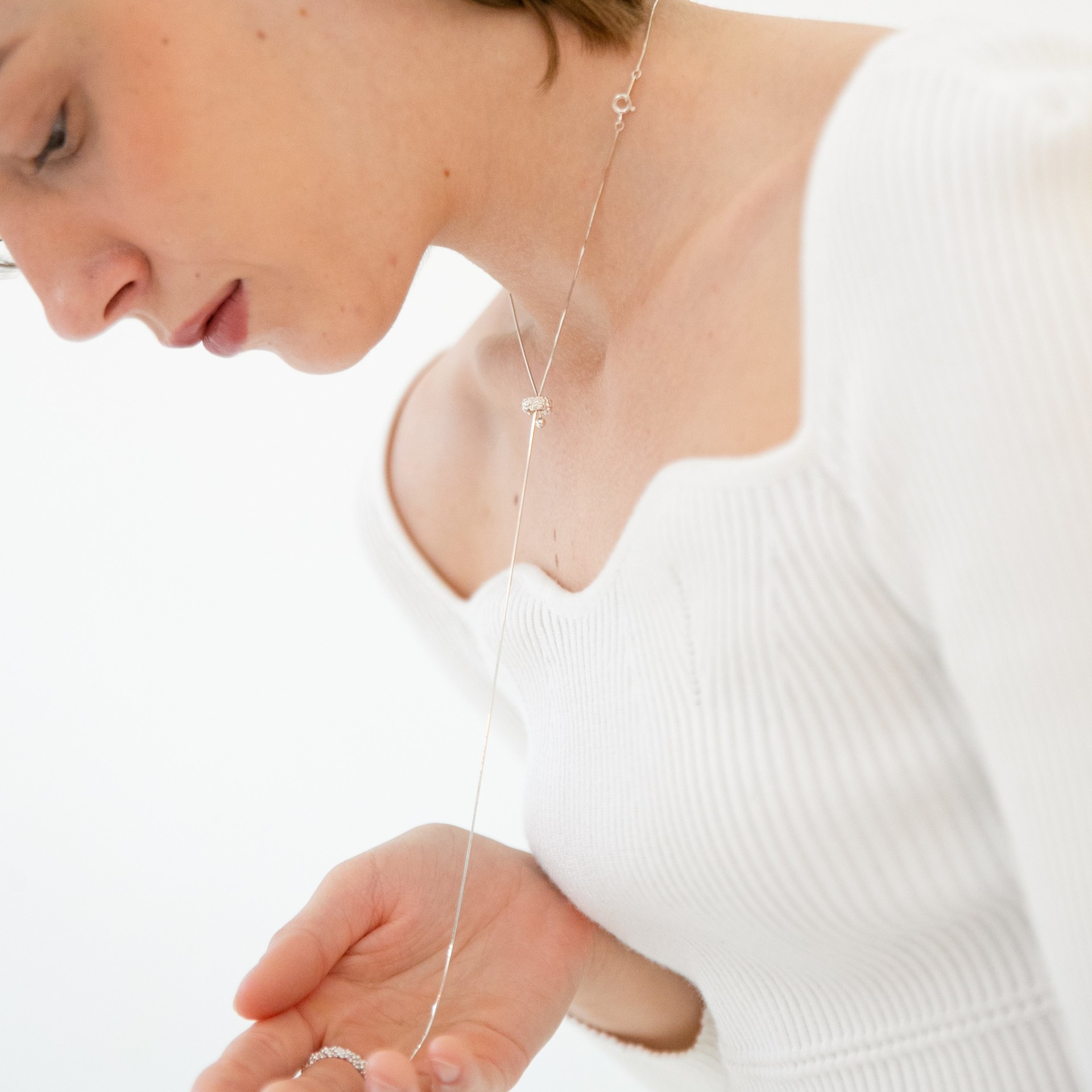 줄 길이 조절이 가능한 목걸이로 다양한 연출이 가능합니다.