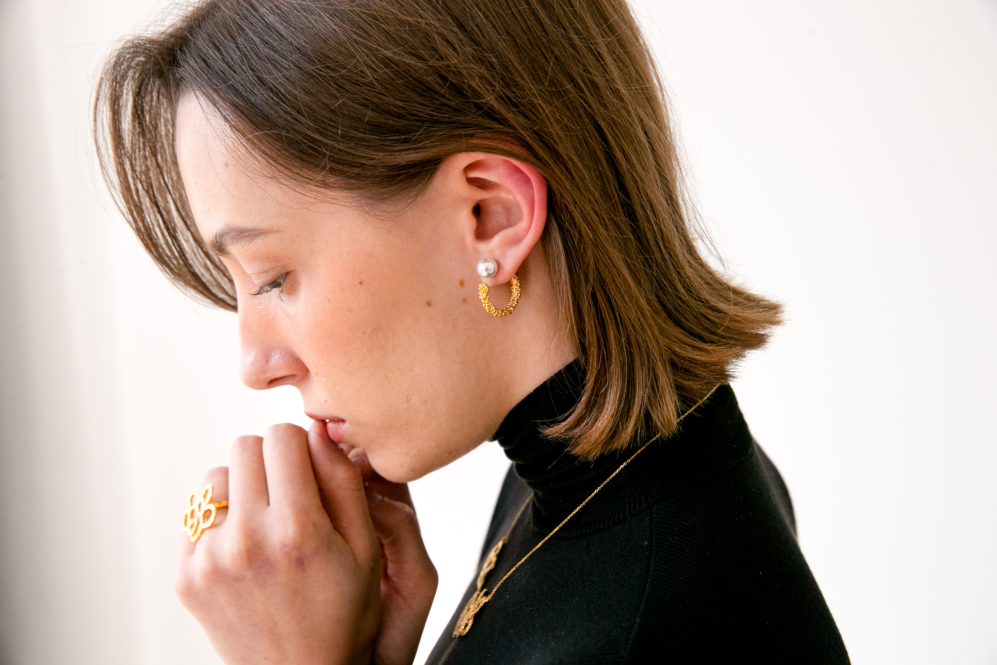 두 가지 형태로 착용할 수 있는 귀걸이로 다양한 연출이 가능합니다.